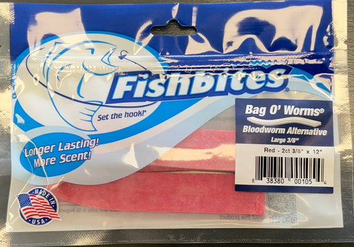 FishbitesOriginal price $8.99 - Original price $8.99Original price$8.99$8.99 - $8.99Current price $8.99| /In stockBloodworm Large Longer Lasting Bait Red - 2ct 3/8” x 12”
